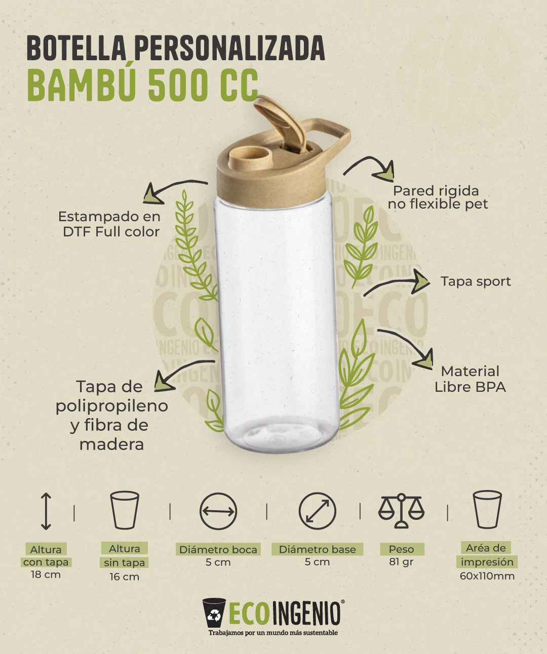 Botella Bambú 500 cc Personalizada